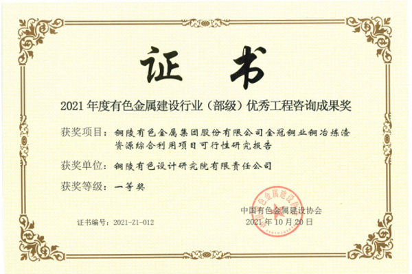 銅陵有色金屬集團(tuán)公司銅冶煉爐渣資源綜合利用項目