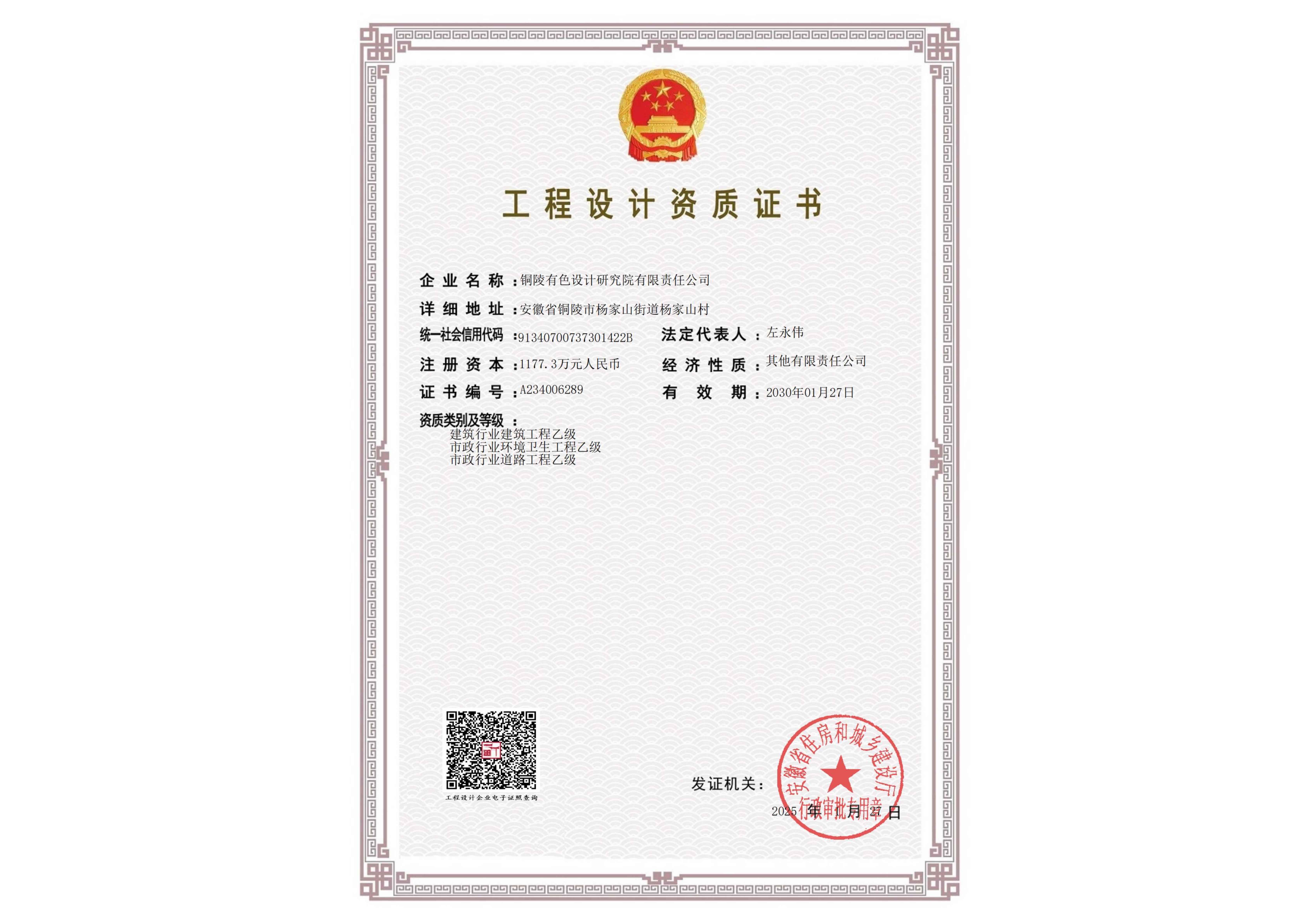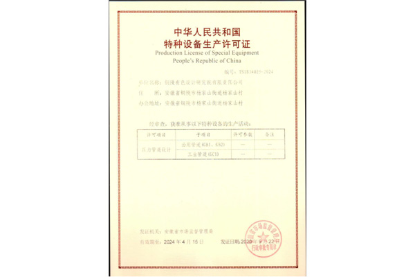 工程設(shè)計(冶金行業(yè)甲級)資質(zhì)證書